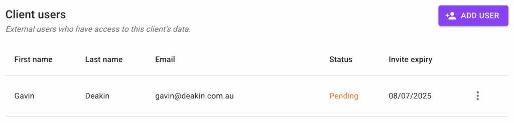 On the Manage Client page, click the “ADD USER” button.